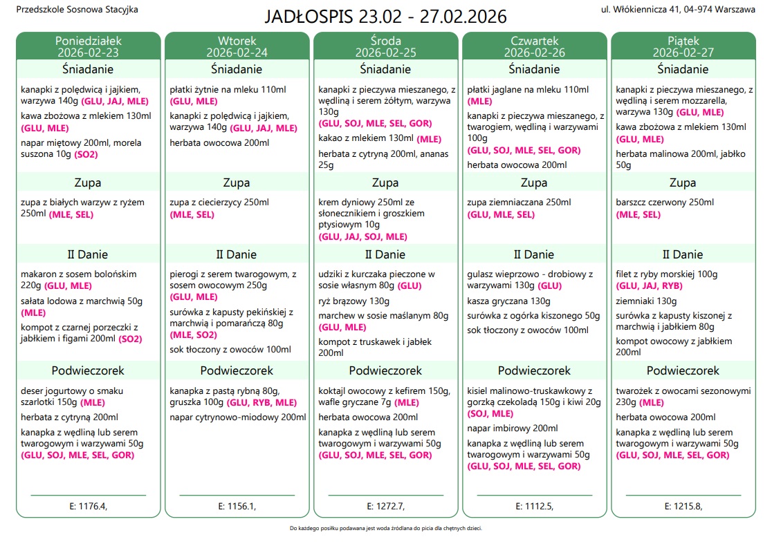 Aktualny jadłospis Edukacja Dzielnicy Wawer Warszawa