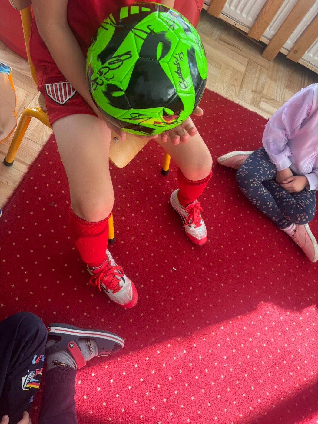 Jan natomiast opowiedział o swoim hobby – piłce nożne - podczas spotkania ze swoja grupą. Z wielkim zaangażowaniem opowiedział o swojej pasji, treningach oraz ulubionej drużynie. Pokazał również strój piłkarski i opowiedział, jak wyglądają mecze oraz przygotowania do nich. Wystąpienie Jana było bardzo ciekawe i pełne sportowych emocji. Jego pasja i entuzjazm z pewnością zainspirowały innych do rozwijania własnych zainteresowań. Brawo za odwagę i wspaniałą prezentację!