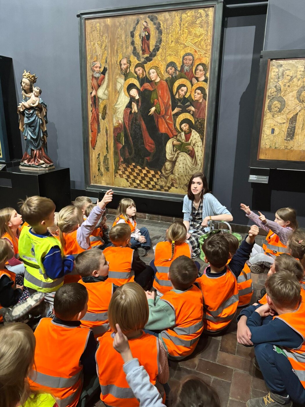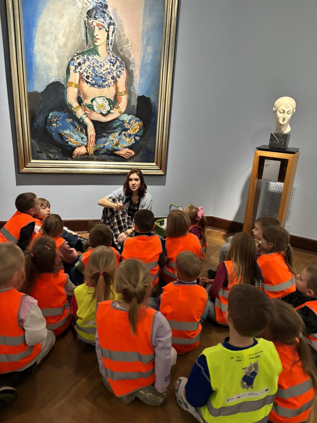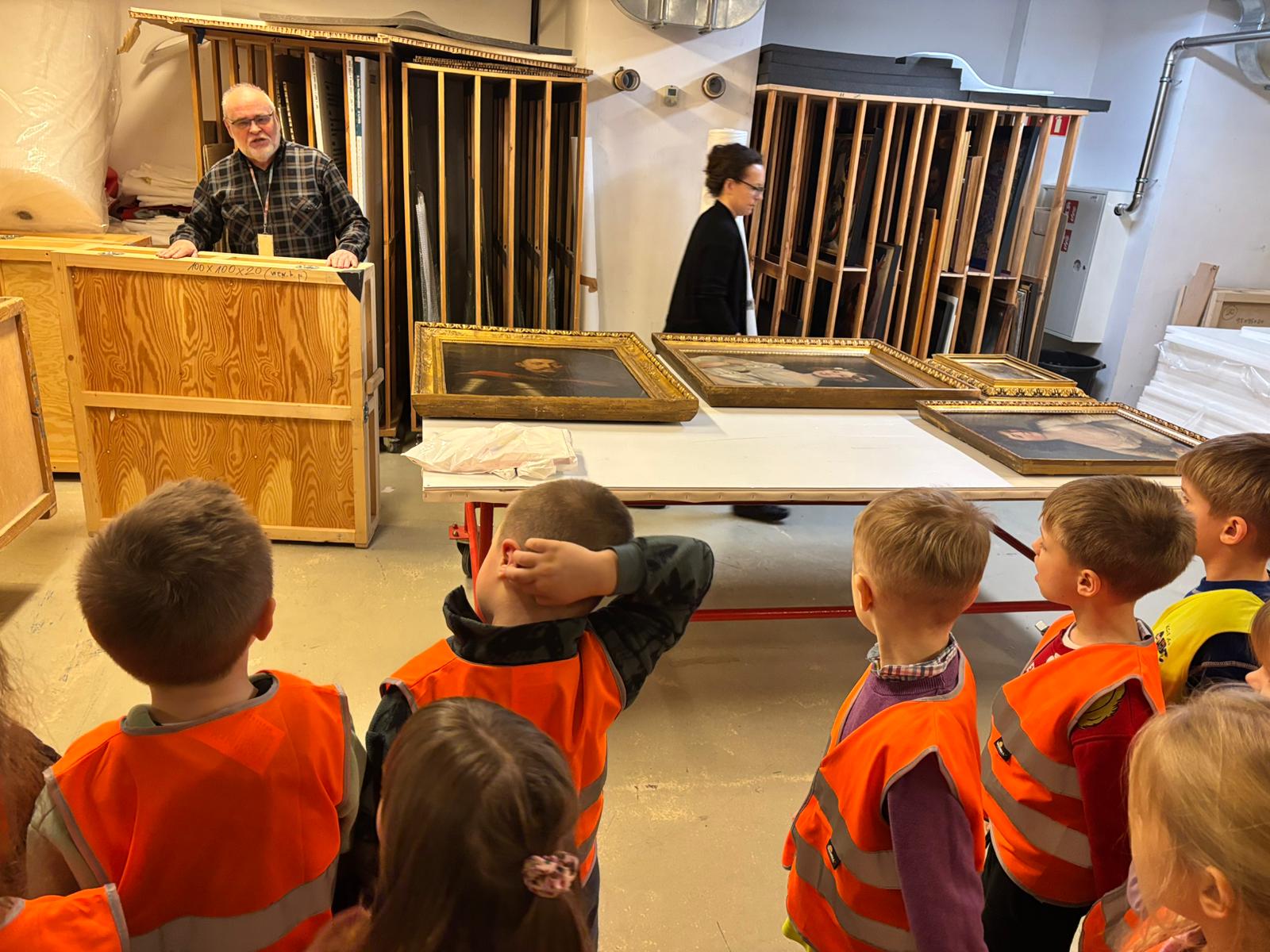 Dodatkowo dzieci uczestniczyły w zajęciach edukacyjnych w Muzeum Narodowe w Warszawie, biorąc udział w lekcjach muzealnych „W świecie barw” oraz „W pracowni malarskiej”. Podczas wizyty miały okazję poznawać różnorodność kolorów, techniki malarskie oraz tajniki pracy artysty, co stało się inspiracją do dalszych działań twórczych w przedszkolu.