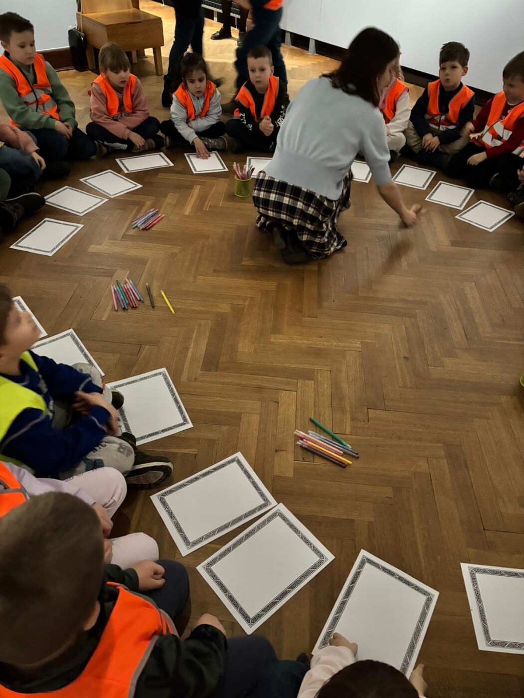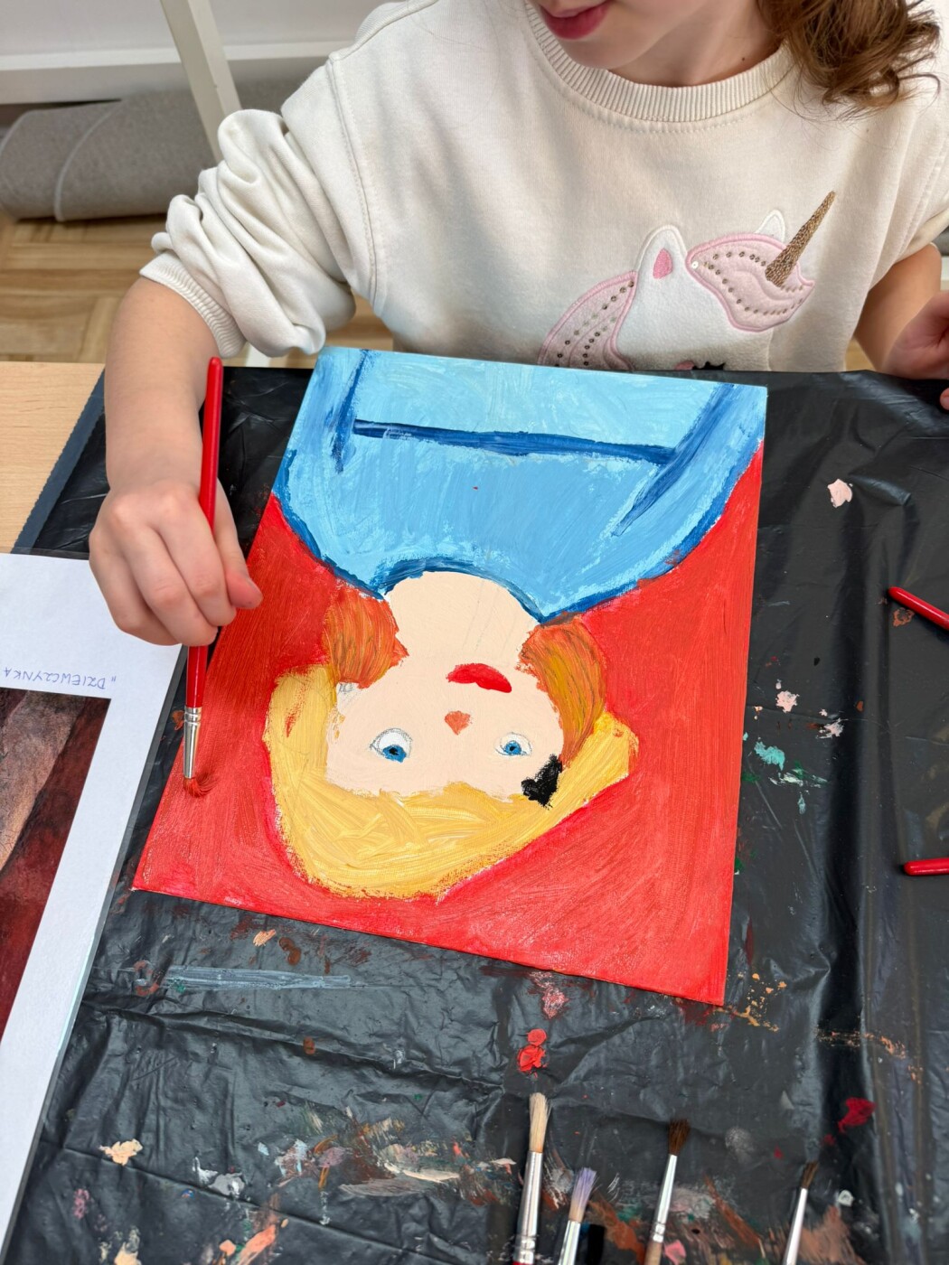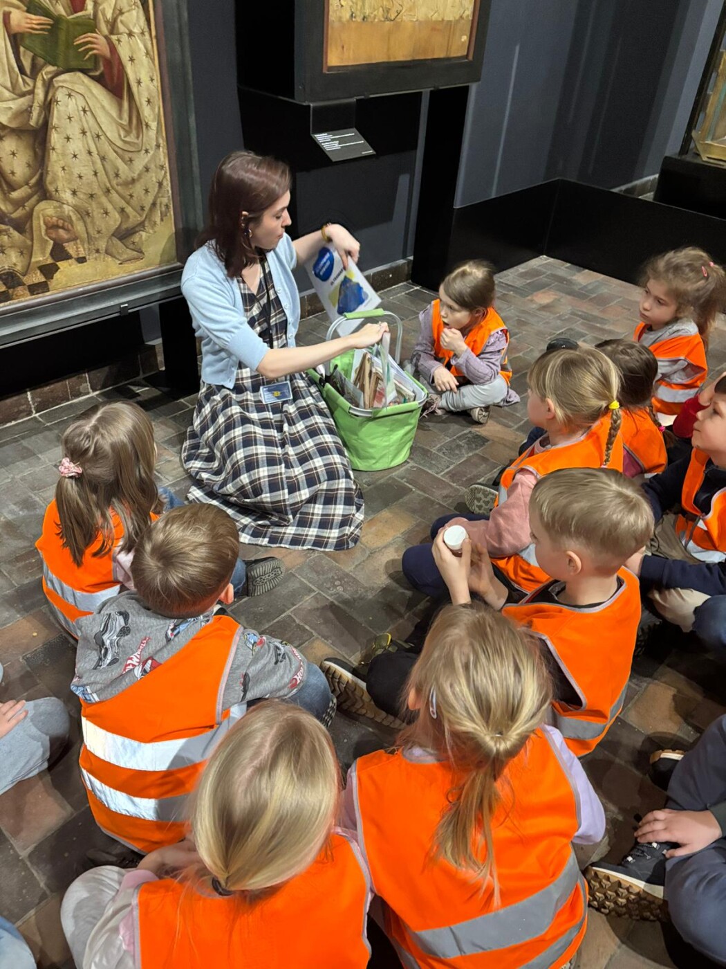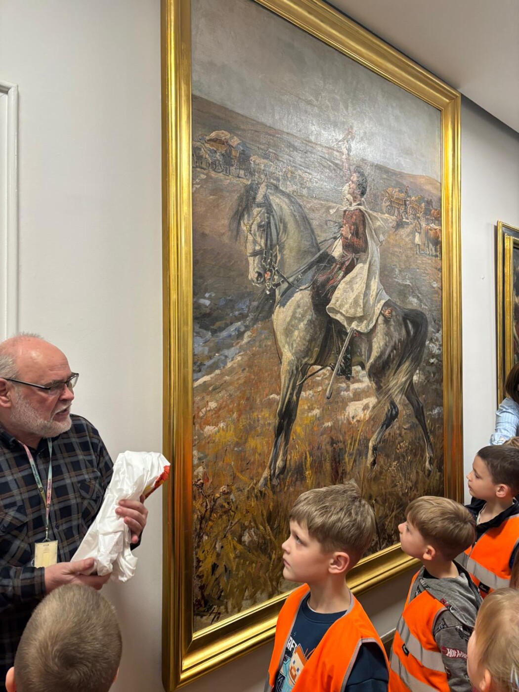 Dodatkowo dzieci uczestniczyły w zajęciach edukacyjnych w Muzeum Narodowe w Warszawie, biorąc udział w lekcjach muzealnych „W świecie barw” oraz „W pracowni malarskiej”. Podczas wizyty miały okazję poznawać różnorodność kolorów, techniki malarskie oraz tajniki pracy artysty, co stało się inspiracją do dalszych działań twórczych w przedszkolu.