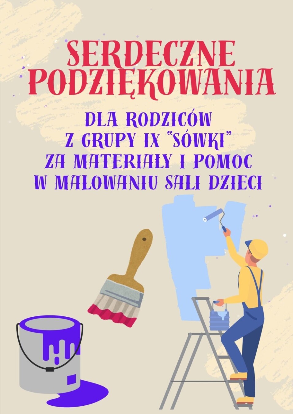 SERDECZNE PODZIĘKOWANIA DLA RODZICÓW DZIECI Z GRUPY IX ZA MATERIAŁY I POMOC W MALOWANIU SALI
