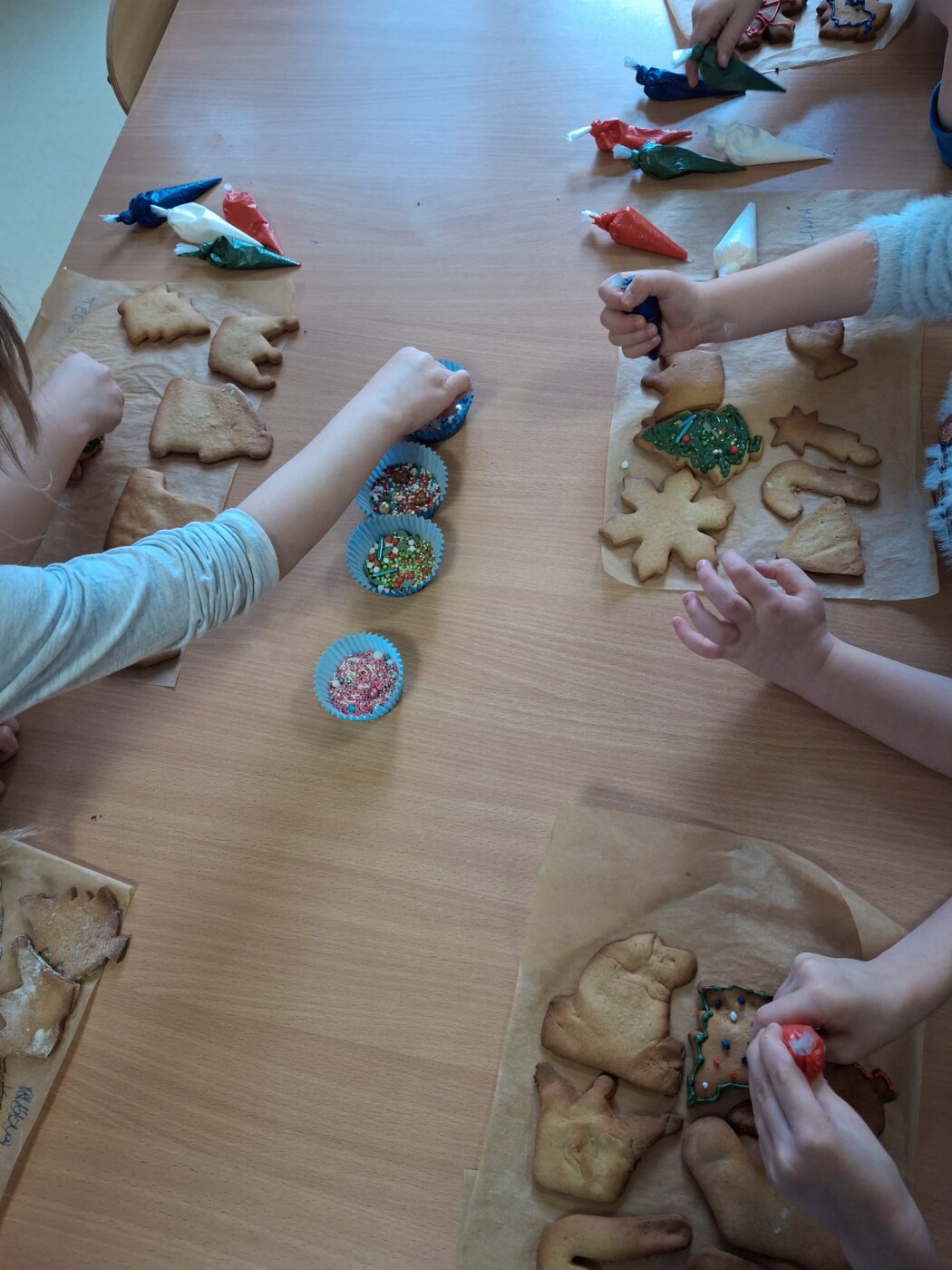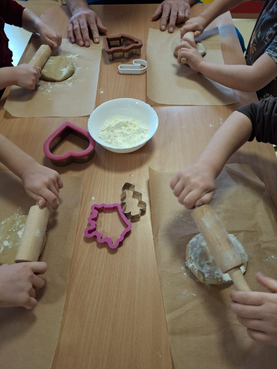 17.12.2025r. Relacja z warsztatów kulinarnych- "Świąteczne pierniczki" w grupie 6 z mamą Teosia i z mamą Borysa oraz rodzicami Emilki.