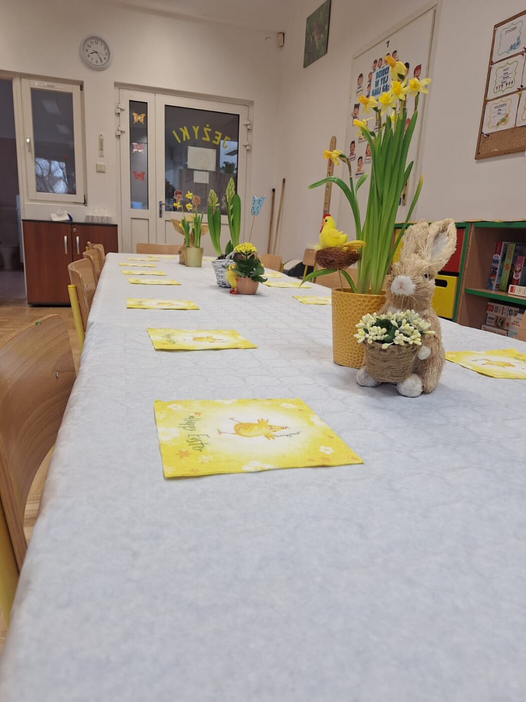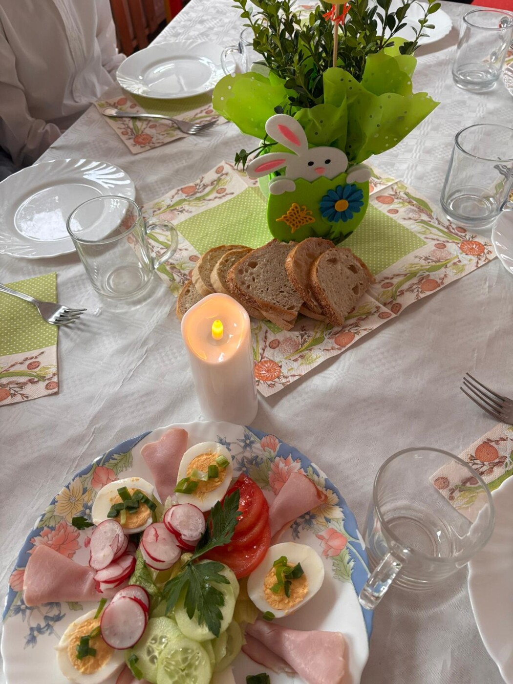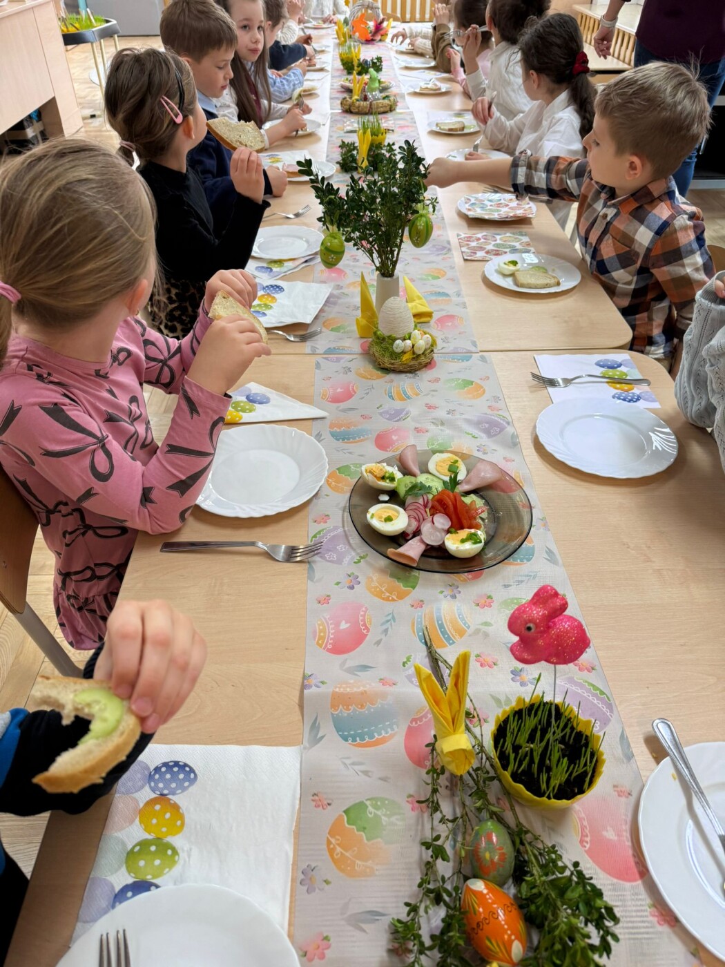 W naszym przedszkolu odbył się, jak co roku, Wielkanocny Dzień Świąteczny. Tego dnia dzieci miały okazję poznać zwyczaje związane ze Świętami Wielkanocnymi. Przedszkolaki z ogromnym zaangażowaniem uczestniczyły w nakrywaniu do stołu, poznawały tradycyjne potrawy wielkanocne. Nie zabrakło świątecznej atmosfery, uśmiechu i wspólnego świętowania. To był dzień pełen ciepła, który pozwolił dzieciom nie tylko dobrze się bawić, ale także lepiej zrozumieć piękne tradycje wielkanocne.