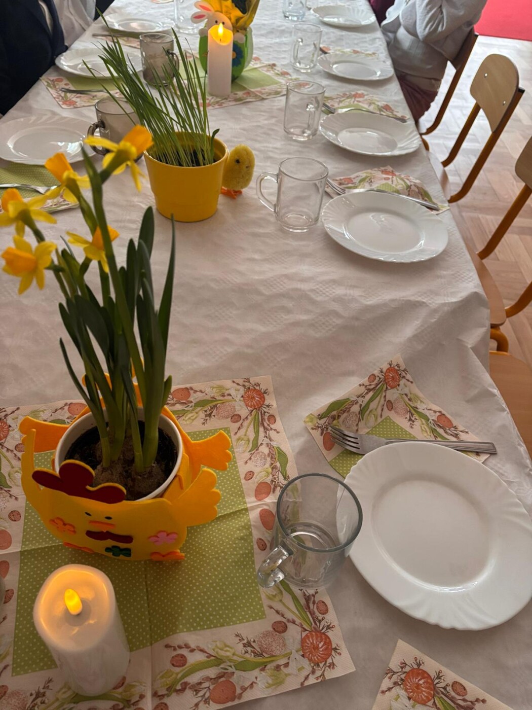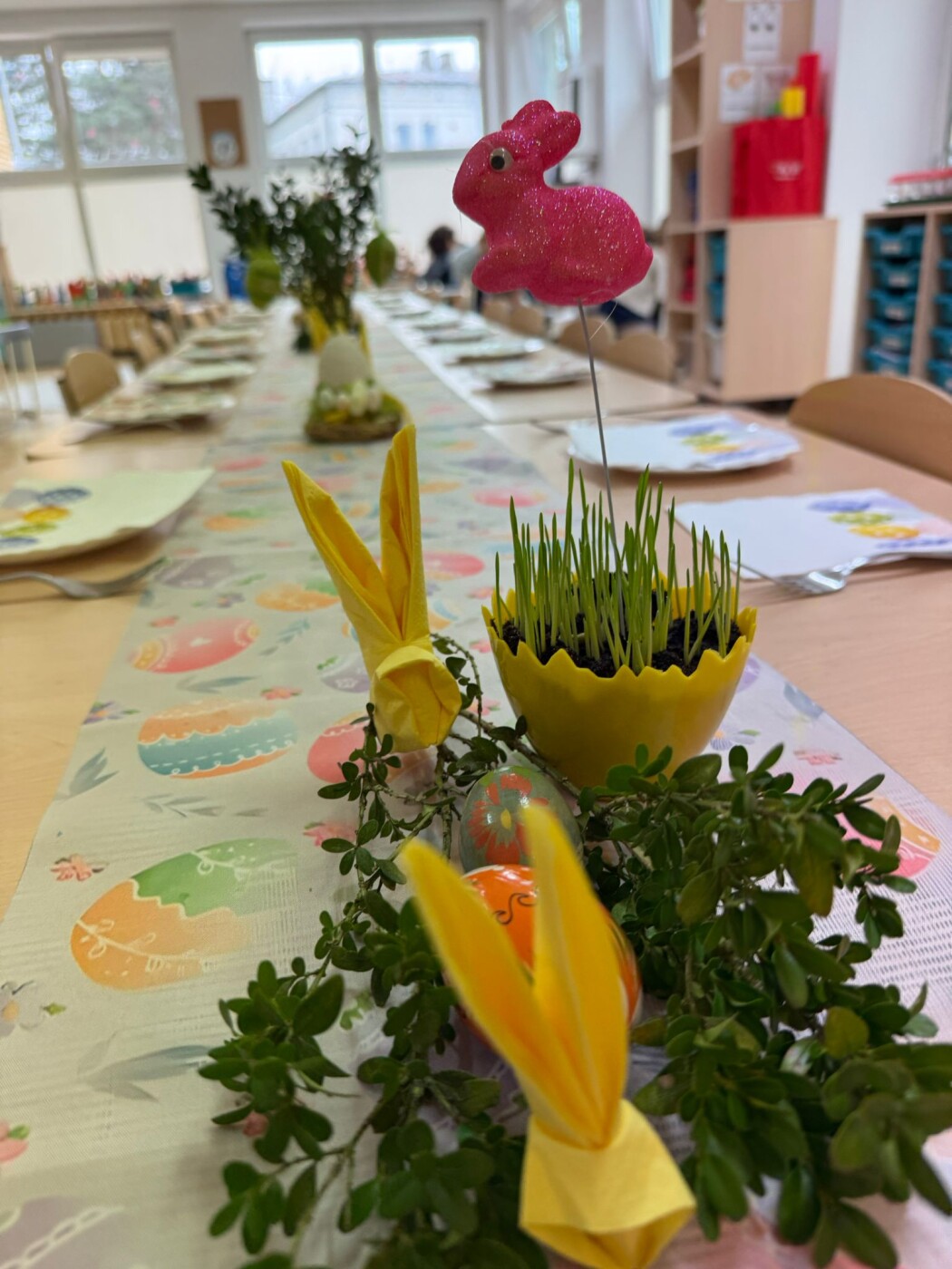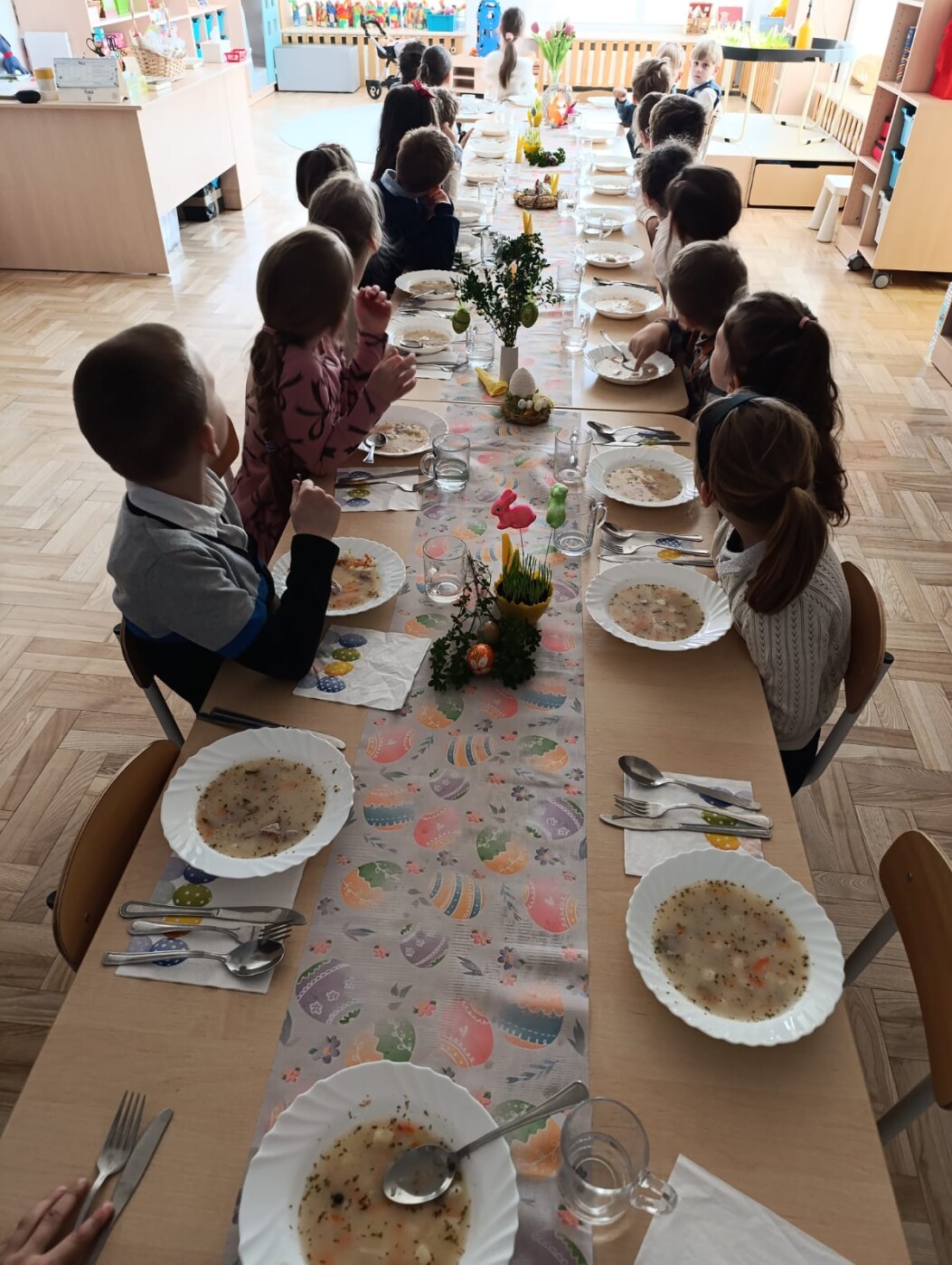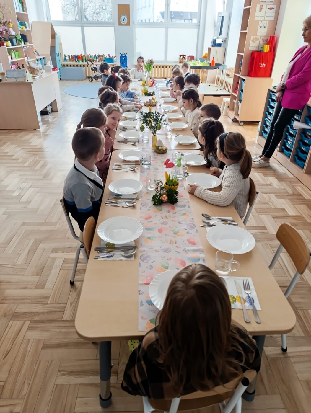 W naszym przedszkolu odbył się, jak co roku, Wielkanocny Dzień Świąteczny. Tego dnia dzieci miały okazję poznać zwyczaje związane ze Świętami Wielkanocnymi. Przedszkolaki z ogromnym zaangażowaniem uczestniczyły w nakrywaniu do stołu, poznawały tradycyjne potrawy wielkanocne. Nie zabrakło świątecznej atmosfery, uśmiechu i wspólnego świętowania. To był dzień pełen ciepła, który pozwolił dzieciom nie tylko dobrze się bawić, ale także lepiej zrozumieć piękne tradycje wielkanocne.