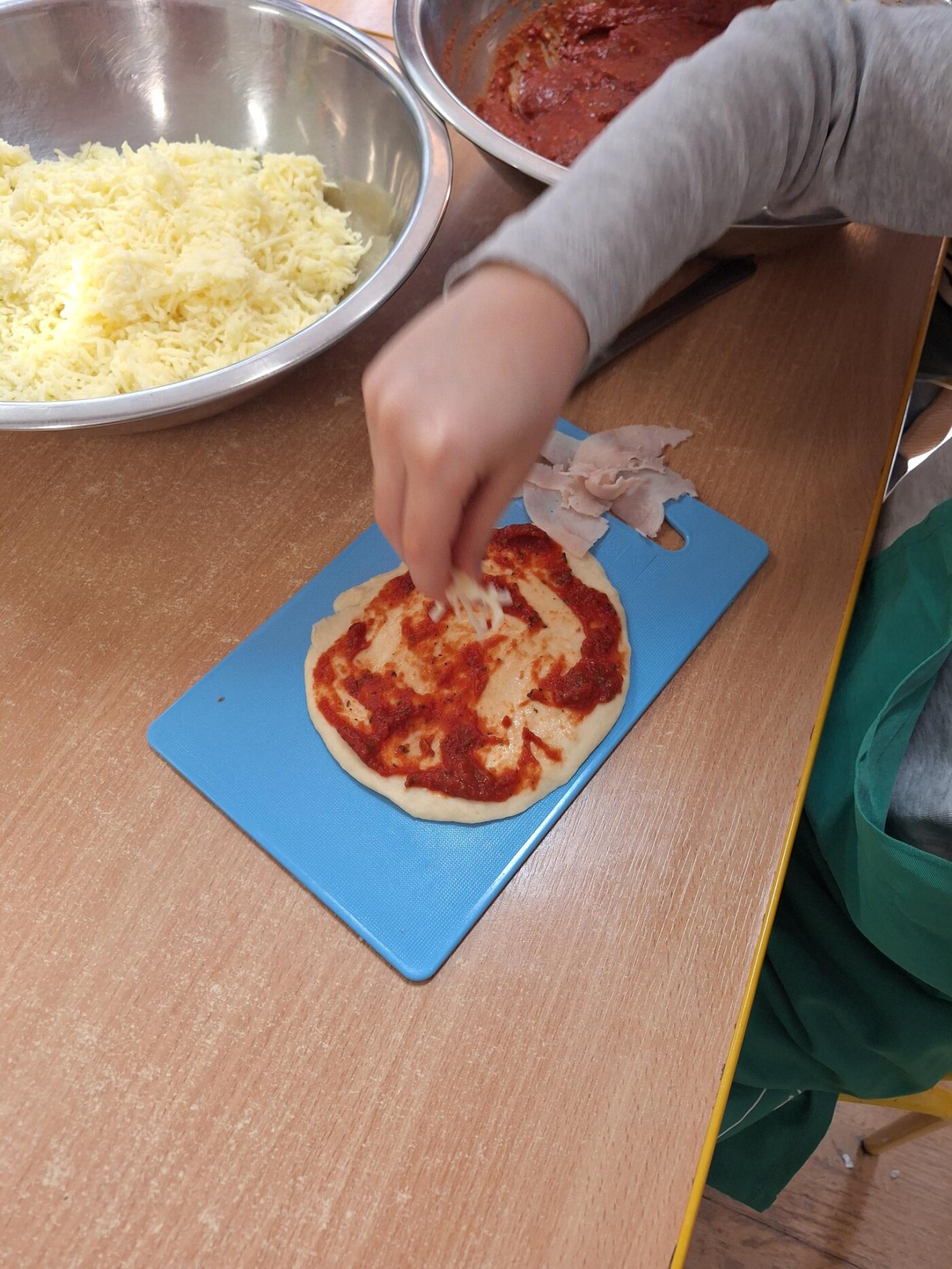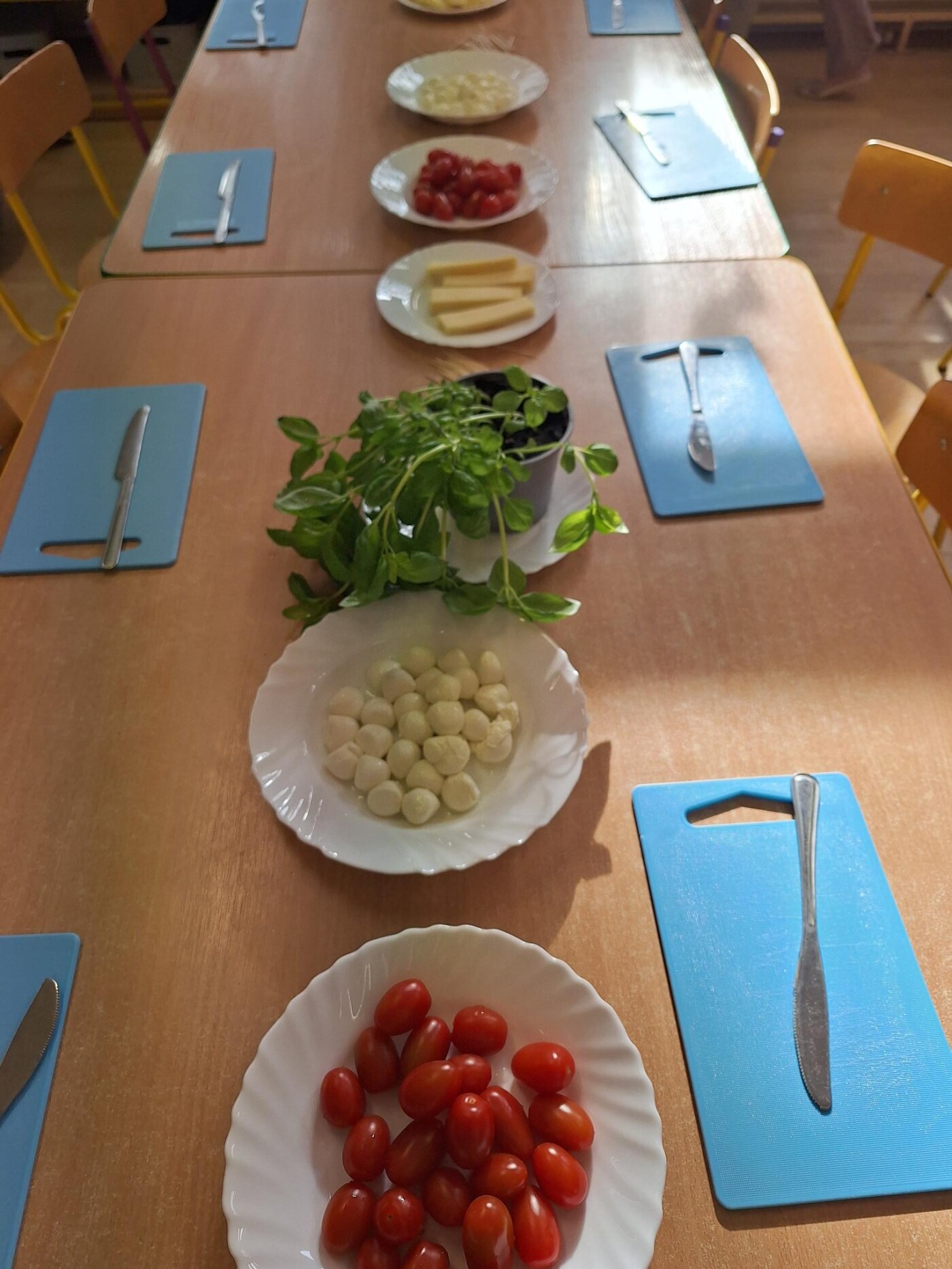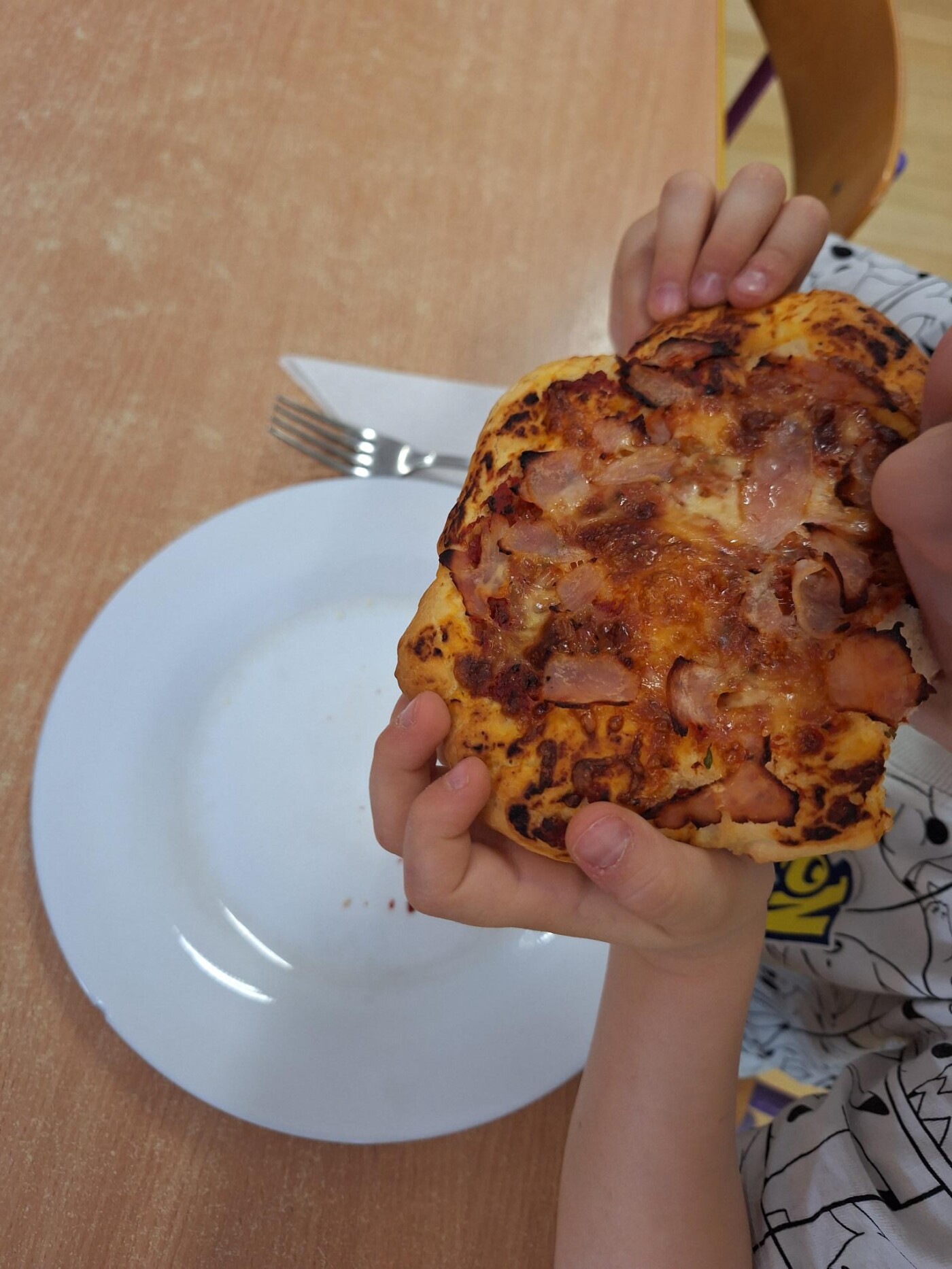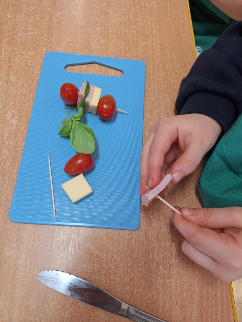 27 lutego w grupie IV „Mrówki” odbyły się kolejne zajęcia kulinarne z cyklu „Wiem, co jem”, podczas których dzieci poznały produkty spożywcze poprzez zmysł dotyku. Przedszkolaki miały okazję dotykać różnych składników i rozpoznawać ich fakturę oraz kształt. Następnie samodzielnie przygotowały pyszną pizzę, wybierając i układając ulubione dodatki. Dużo radości sprawiło im także wykonanie kolorowych koreczków. Zajęcia były nie tylko świetną zabawą, ale również okazją do rozwijania samodzielności u dzieci.